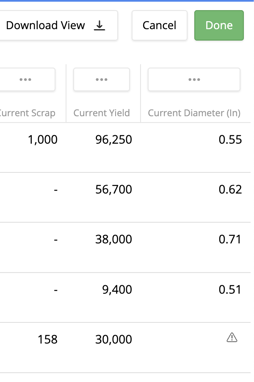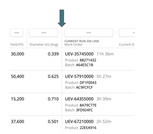 To rearrange the order of columns, select the menu then click Move Left or Move Right. You can continue selecting a column and moving further in either direction, with the exception of the center line. Columns to the left of this line are associated with the view time range selection. The columns to the right of this line are either live metrics or associated with the current production run. Columns cannot be moved between these halves at this time.
