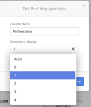 The final 2 column configuration options can both be found by selecting Edit column display. This will bring up the pop-up menu shown below. With the option to rename the displayed column title, or adjust the number of decimals displayed.