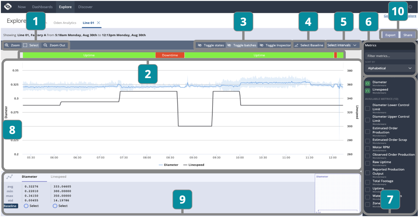 The Explore Timeseries view enables investigation into process data with advanced analytical tools